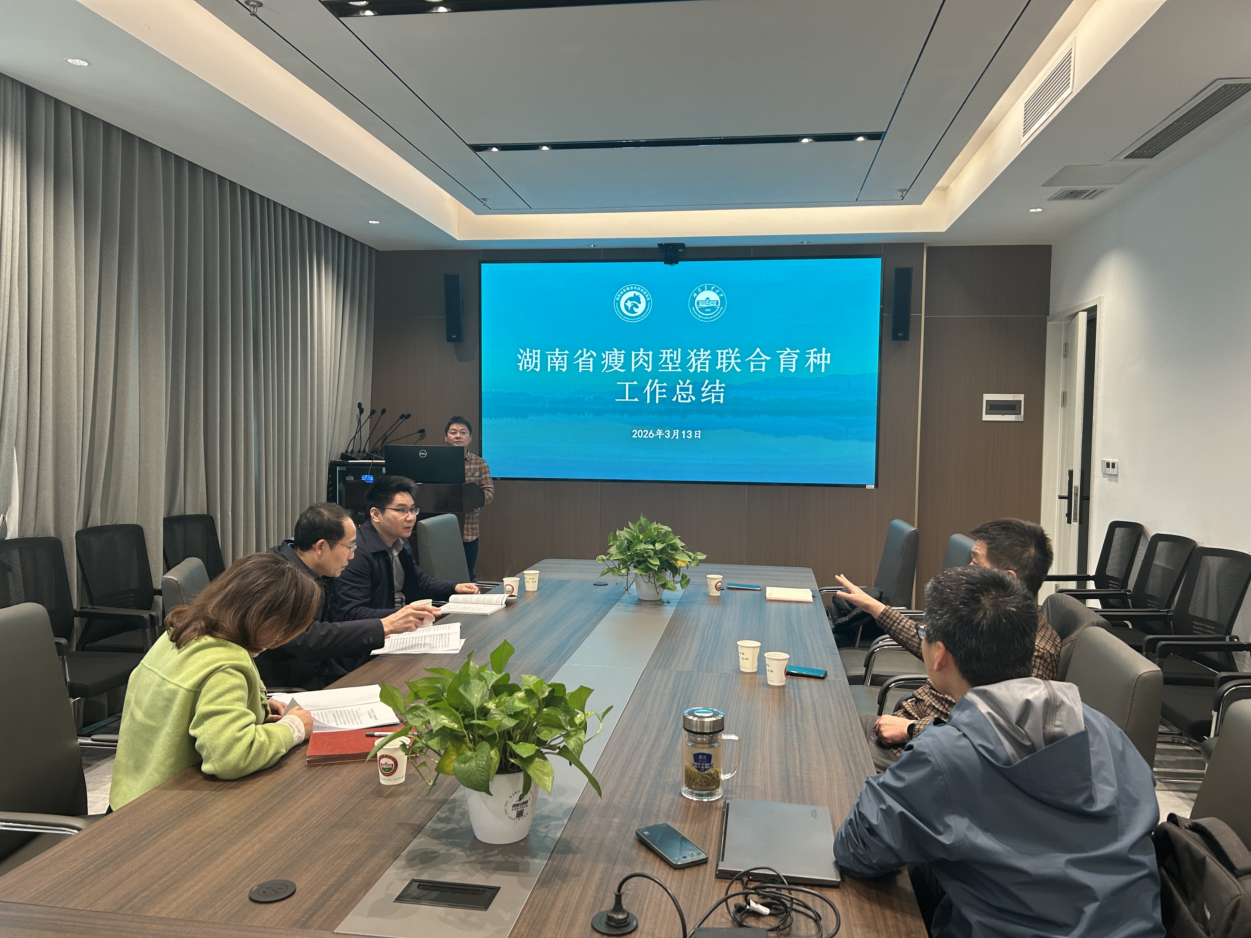 在听取汇报后,与会领导对省联合育种工作取得的成果给予充分肯定。会议指出,持续推进瘦肉型猪联合育种是提升我省生猪种业核心竞争力的关键举措,必须久久为功、持续发力。会议强调,要立足当前、着眼长远,紧密结合“十五五”规划前期研究,进一步明确目标任务和工作重点;要正视我省在育种新技术、智能化养殖装备应用等方面的差距,加快推动先进技术与育种实践深度融合;省种猪遗传评估中心作为全省生猪育种工作的技术支撑单位,要切实发挥牵头抓总作用,加强统筹协调和服务保障,省农业农村厅将继续加大对联合育种工作的支持力度,给予省种猪遗传评估中心必要的经费保障,以确保各项工作有力有序推进。